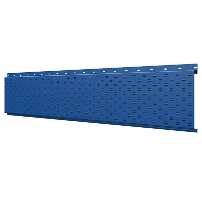 Линеарная потолочно-стеновая панель с ПЕРФОРАЦИЕЙ для вентиляции цвет RAL5005 Синий Сигнал применяется в качестве софитов для подшивы крыши, наружной и внутренней отделки потолков, стен, фронтонов фасада дома в Уфе.