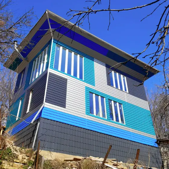 Дом Перевертыш с фасадом из сайдинга Евро-Брус разных цветов